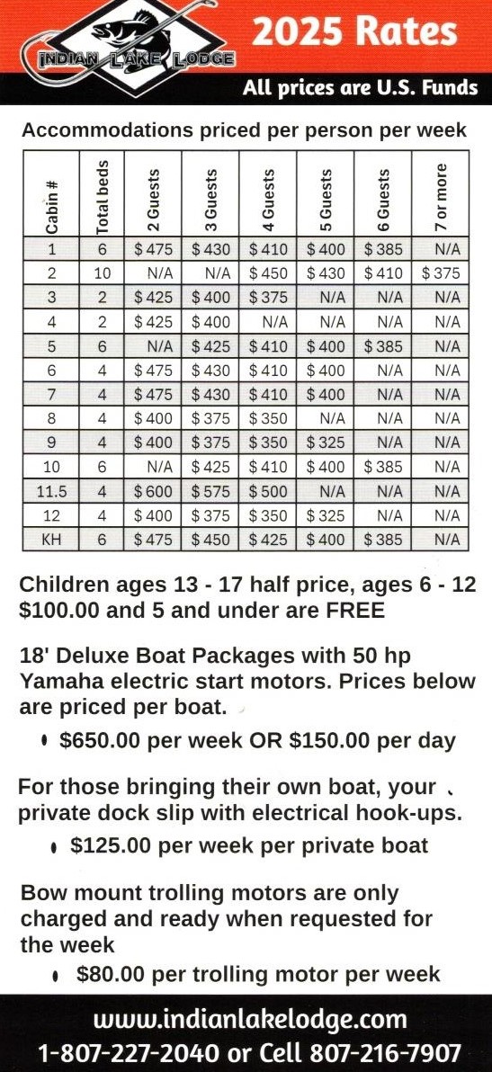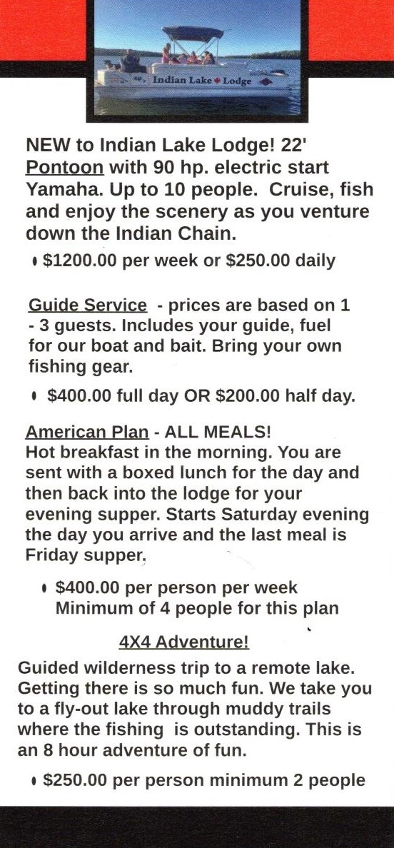At Indian Lake Lodge we offer complete Housekeeping and American Plan Packages charged in American Funds.